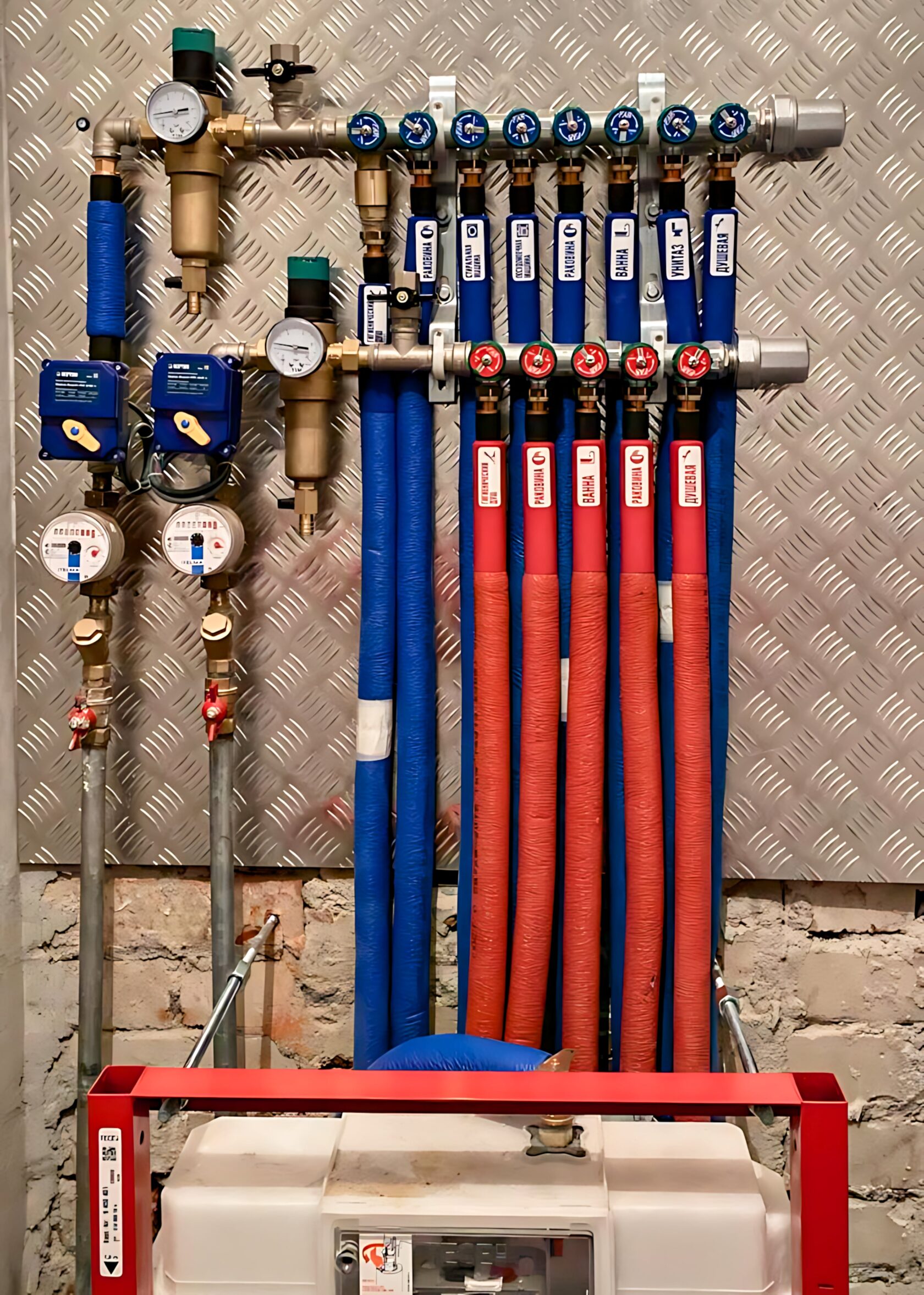 1. Установка гребенок: Мы устанавливаем гребенки для распределения воды, что позволяет удобно управлять подачей воды в разные части вашего дома или офиса. Это решение обеспечивает оптимизацию водоснабжения и упрощает дальнейшее обслуживание системы.